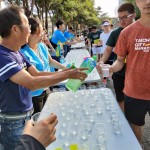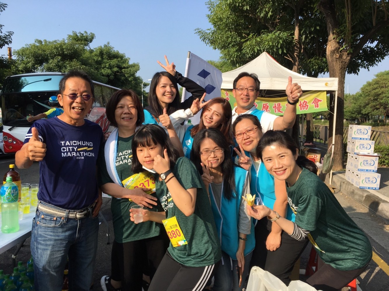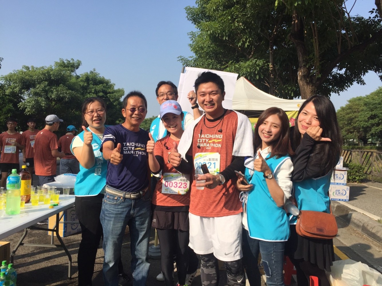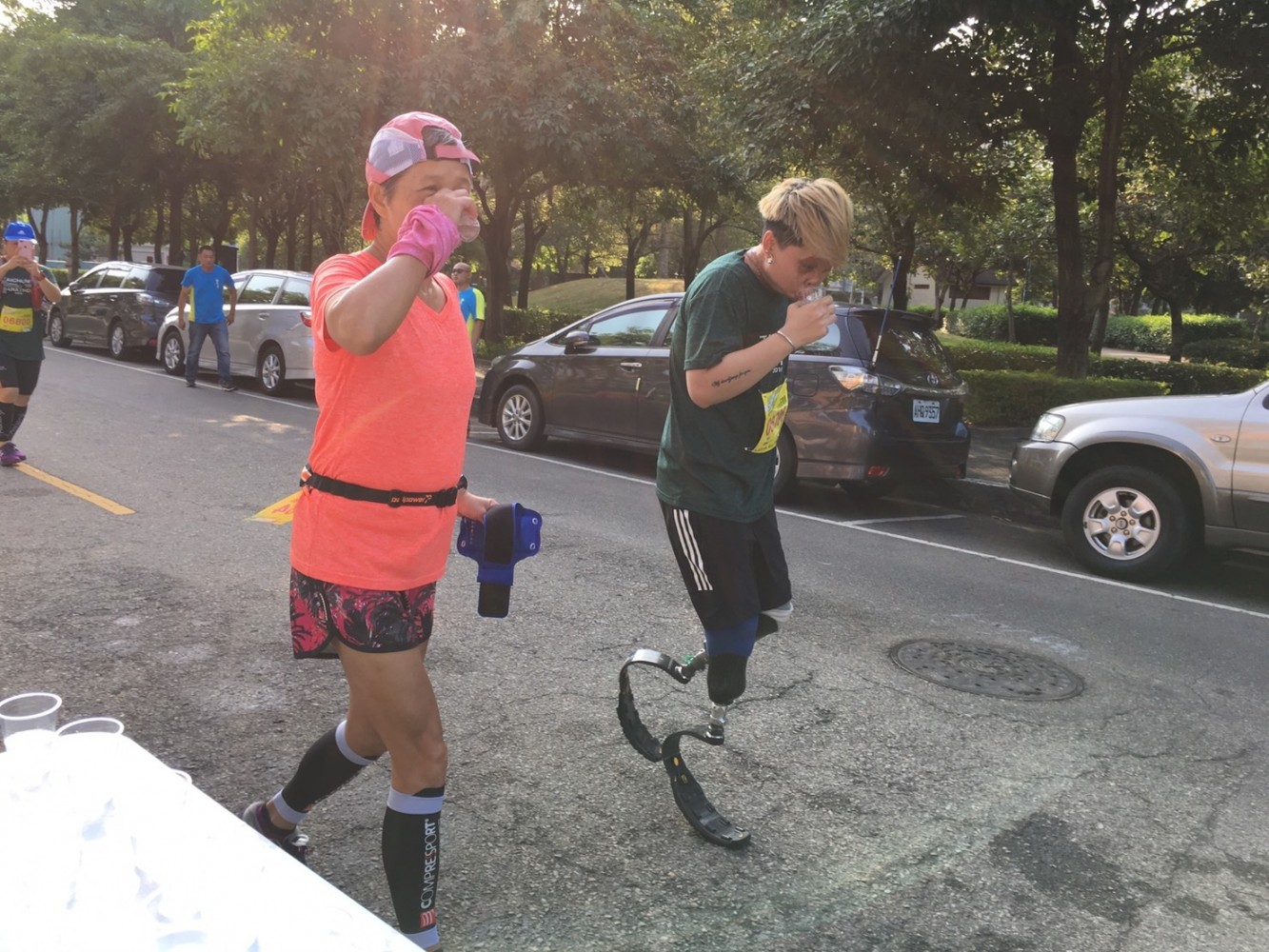 補給站的加油打氣,遞上水杯拍肩擊掌