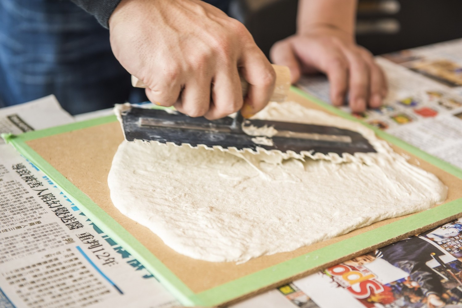 趁珪藻土未凝固前七手八腳押上紋路、