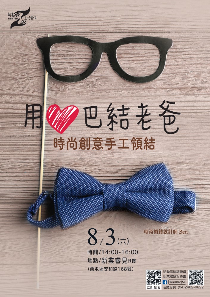 8/3(六)《時尚創(chuàng)意手工領(lǐng)結(jié)》活動報名辦法