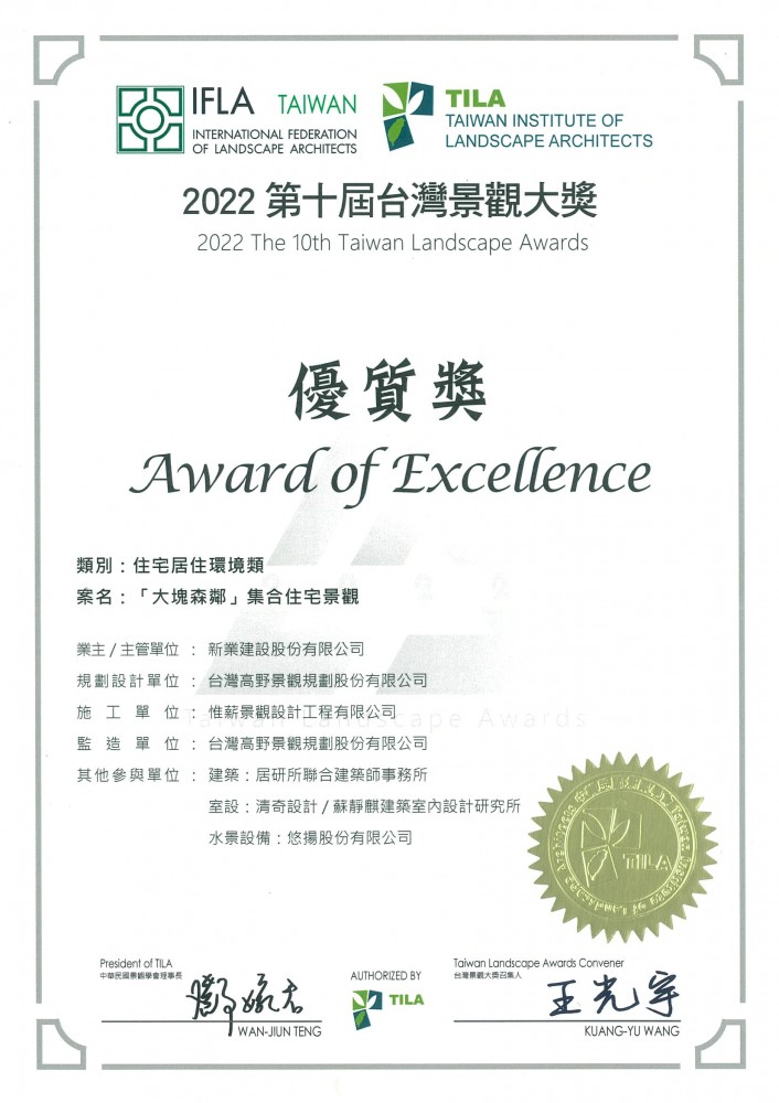 新業(yè)新里程|大塊森鄰_榮獲2022年第十屆臺灣景觀大獎