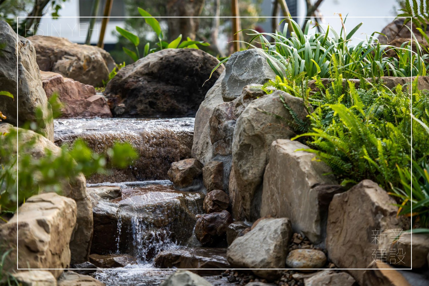 中庭池畔草原、悠走踏石小徑